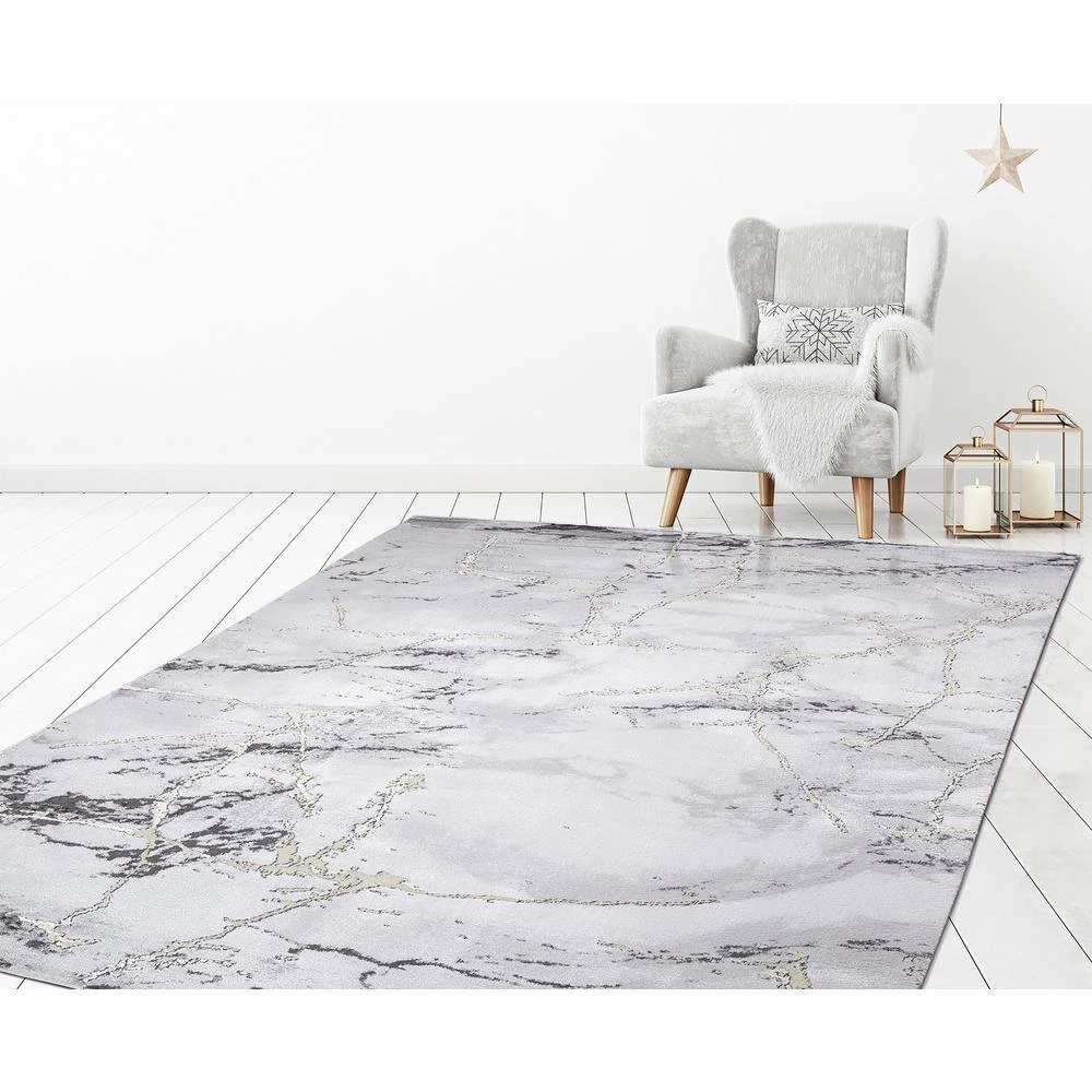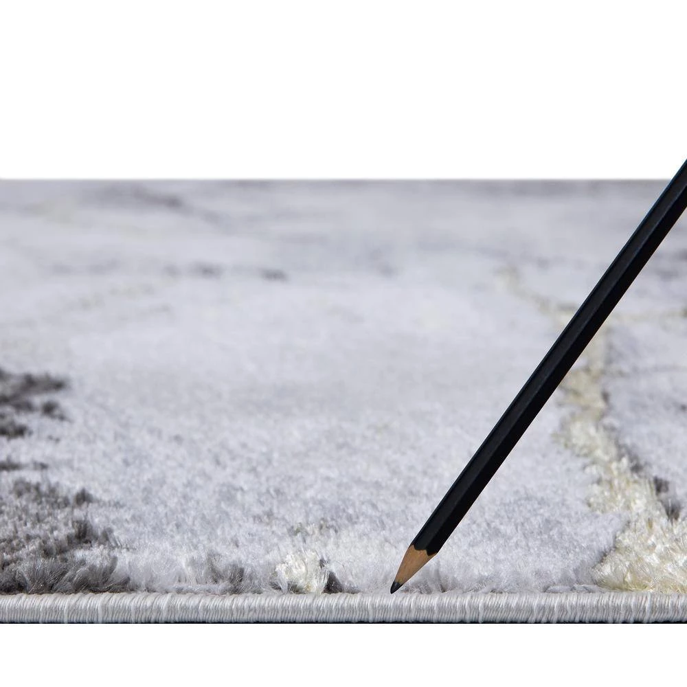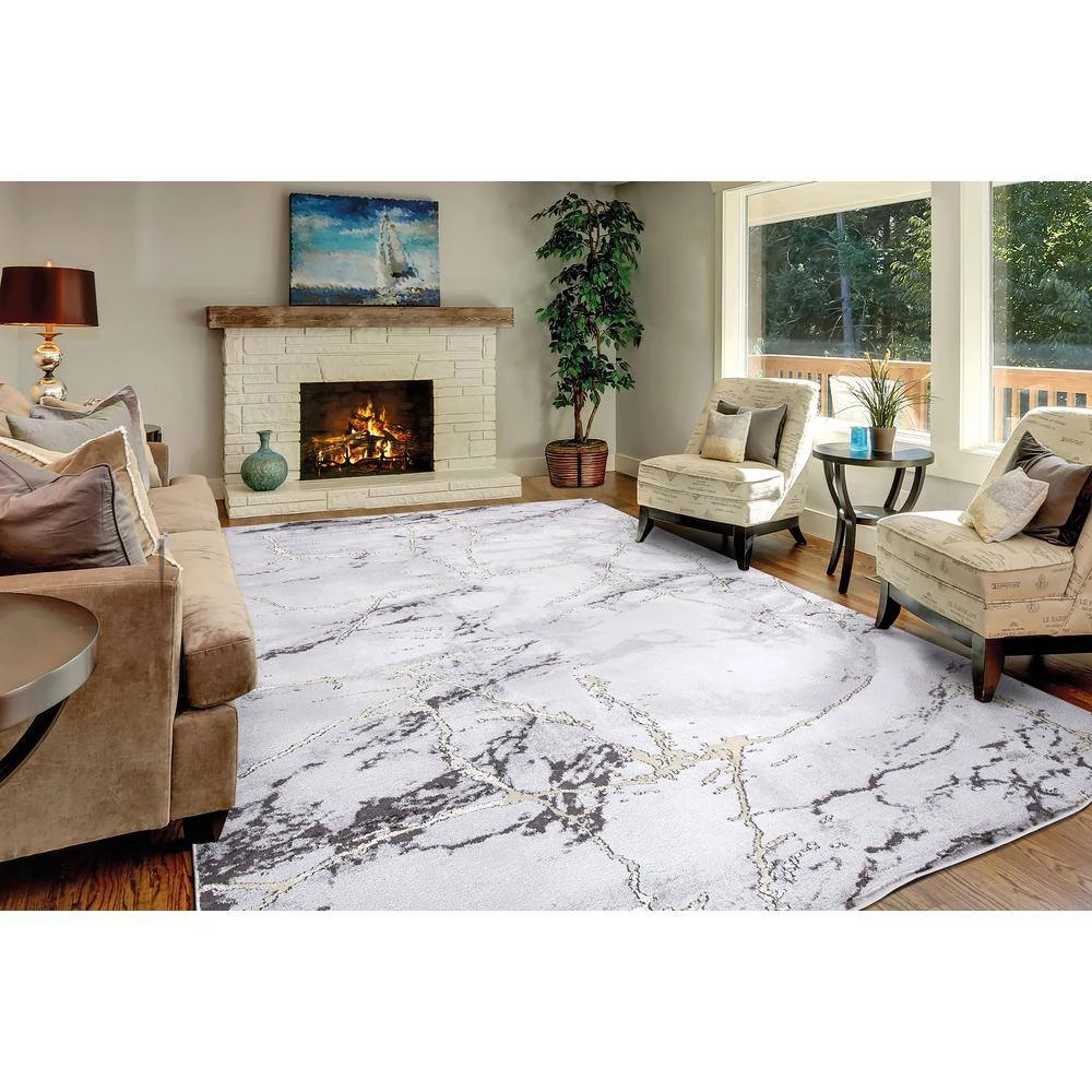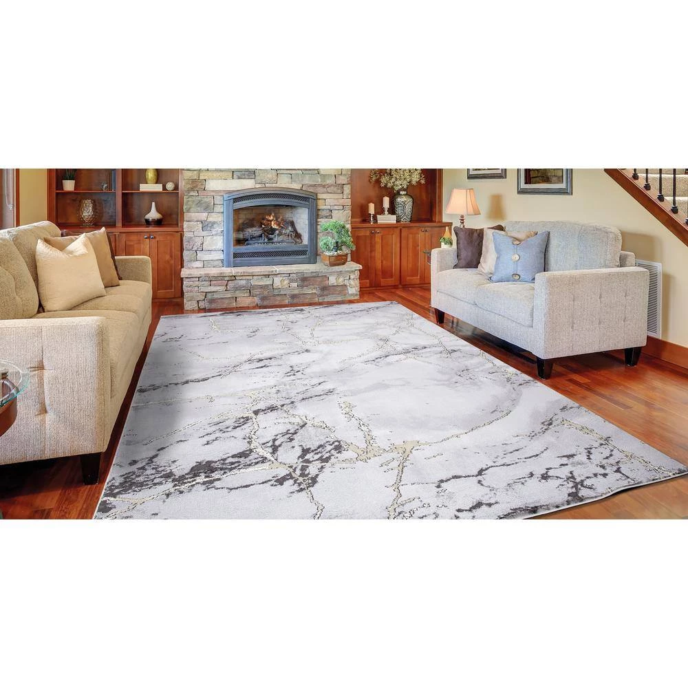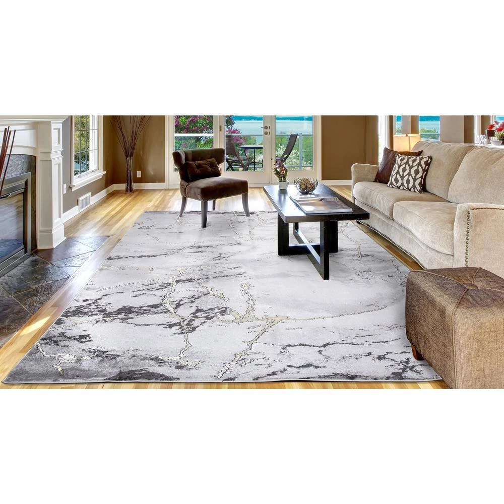 This area rug has stain-resistant fabrics and long-lasting materials, remaining in great shape over time. The designs boast a popular marble look and feature a high/low textured pile. There are accent shiny yarns incorporated within the designs in either gold or silver which add further glamor to this assortment. This rug adds pleasant and refined appearance of your room or office for an understated touch of elegance. It is extremely durable and will hold up the heavy traffic; for a longer lifespan, a rug pad is recommended.