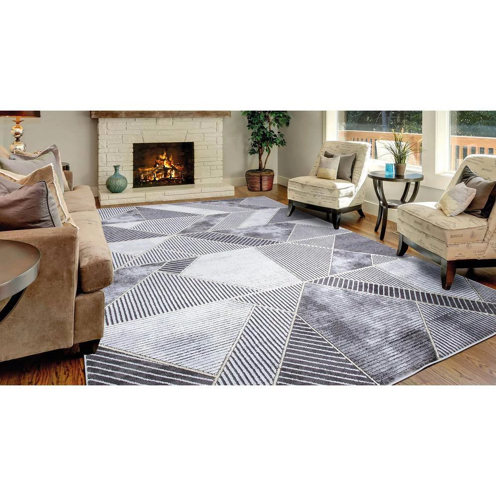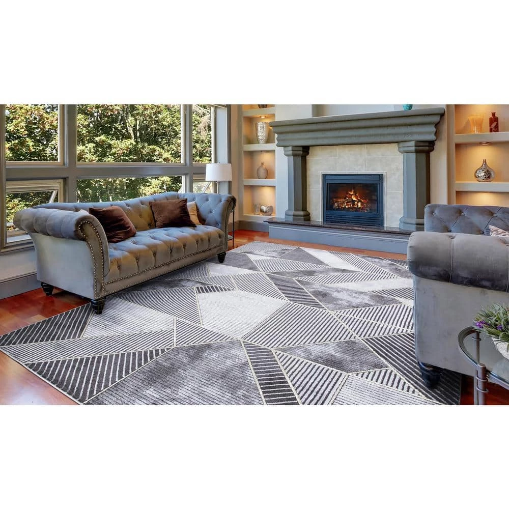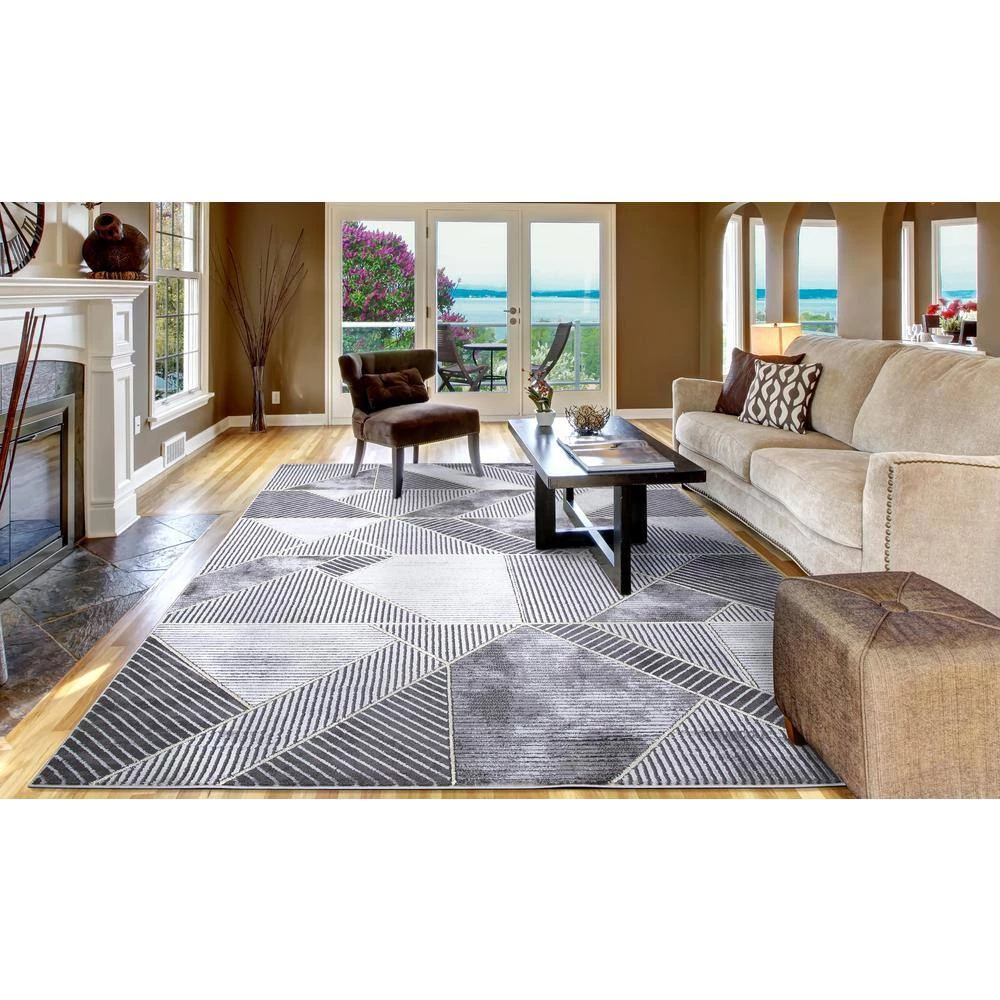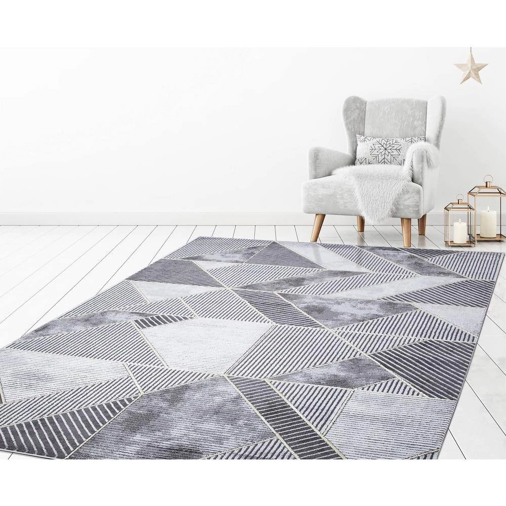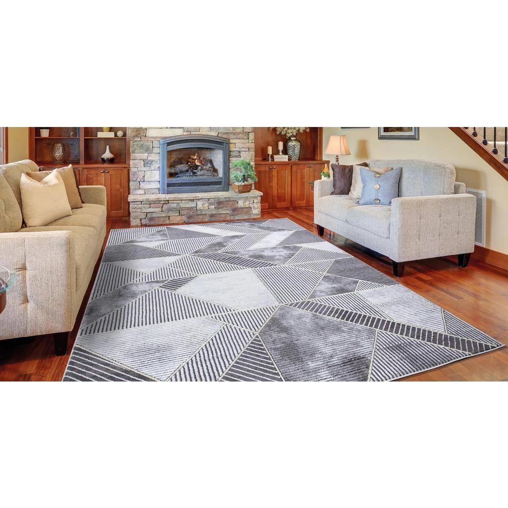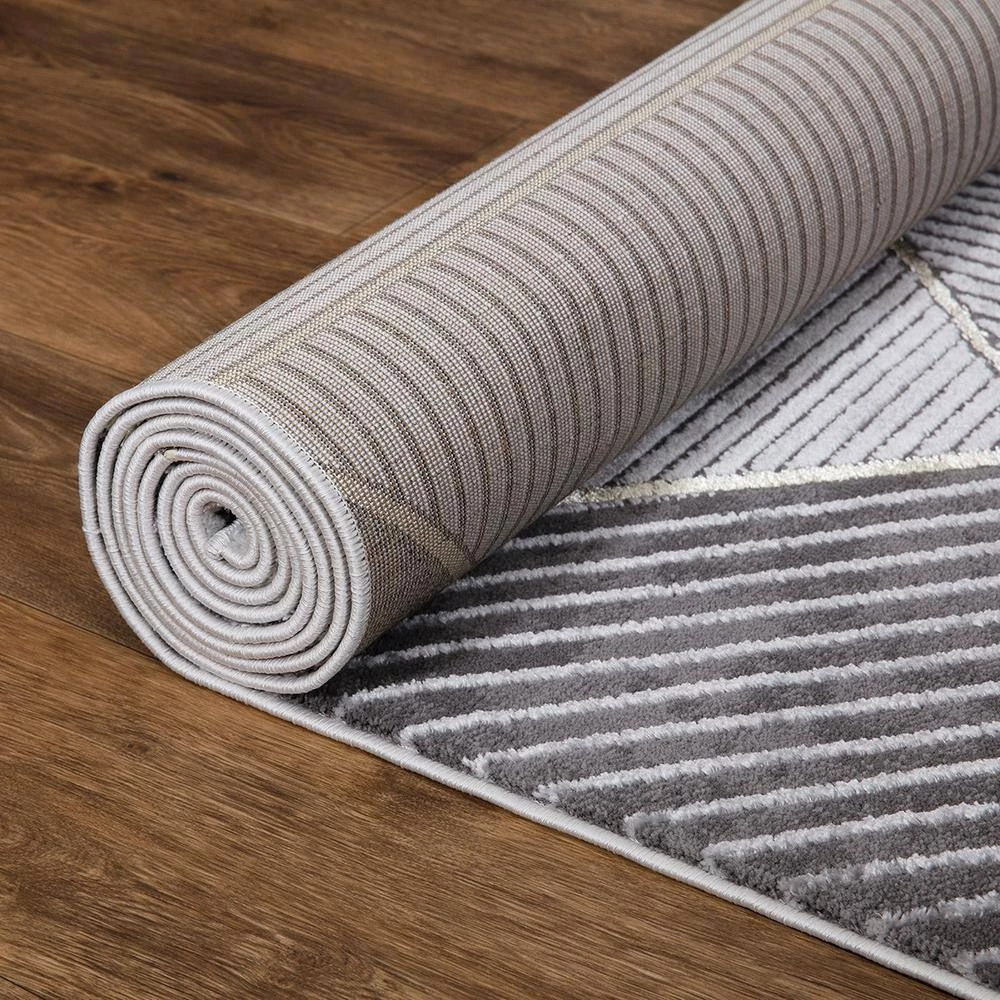 This area rug has stain-resistant fabrics and long-lasting materials, remaining in great shape over time. The designs boast a popular marble look and feature a high/low textured pile. There are accent shiny yarns incorporated within the designs in either gold or silver which add further glamor to this assortment. This rug adds pleasant and refined appearance of your room or office for an understated touch of elegance. It is extremely durable and will hold up the heavy traffic; for a longer lifespan, a rug pad is recommended.