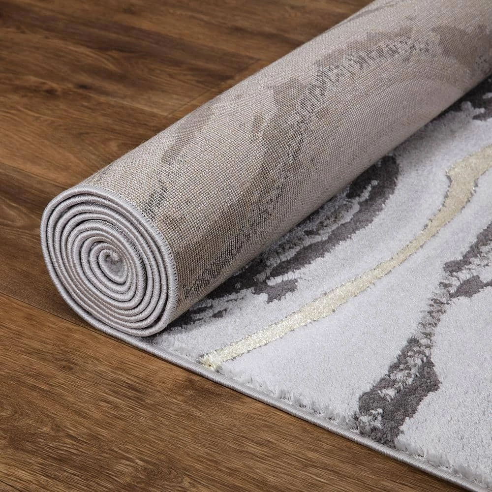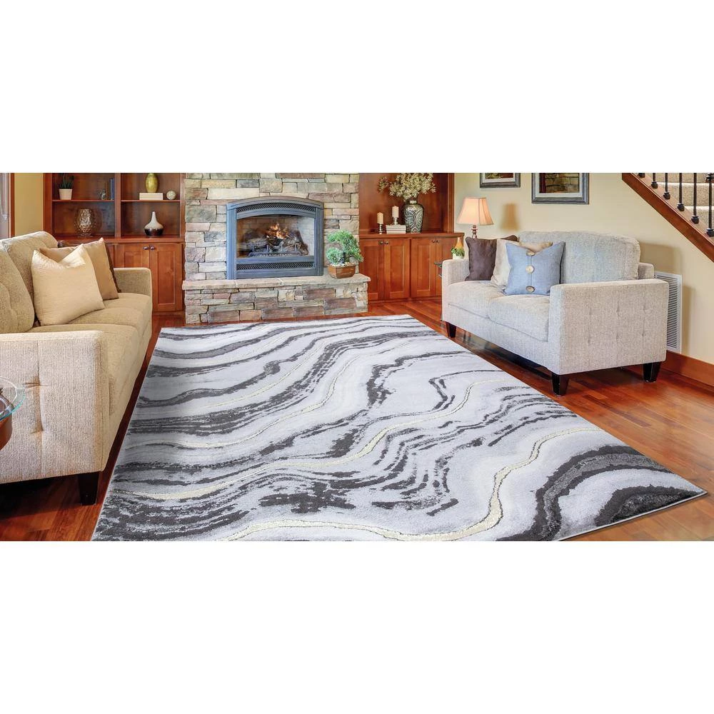 This area rug has stain-resistant fabrics and long-lasting materials, remaining in great shape over time. The designs boast a popular marble look and feature a high/low textured pile. There are accent shiny yarns incorporated within the designs in either gold or silver which add further glamor to this assortment. This rug adds pleasant and refined appearance of your room or office for an understated touch of elegance. It is extremely durable and will hold up the heavy traffic; for a longer lifespan, a rug pad is recommended.