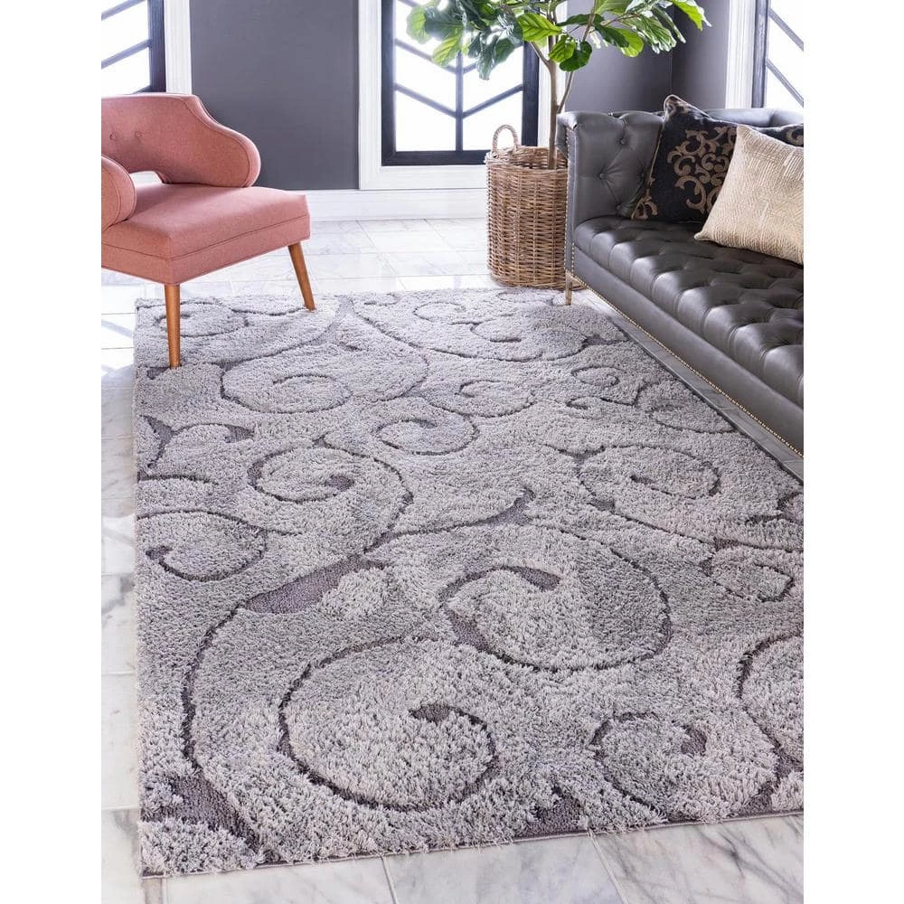 Discount ๐Ÿ›’ Floral Shag Carved Gray 8′ 0 x 10′ 0 Area Rug by Unique Loom ๐Ÿ”ฅ
