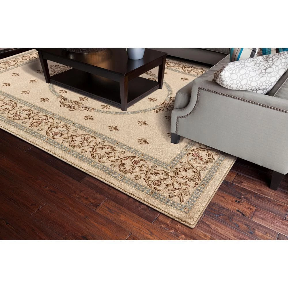 Upgrade any floor with this Concord Global Trading Jewel Collection 8 ft. x 10 ft. Area Rug. This loomed rug has a classic style, which will complement your current decor with a refined touch. It features stain-resistant fabrics and long-lasting materials, ensuring it will stay in perfect shape over time. It has a 100% olefin design, making it a durable option for your home. This loomed rug has a medallion print for a mandala detailing. It is designed with elements of beige, adding a touch of elegance. With a dense pile, it will endure heavy foot traffic.