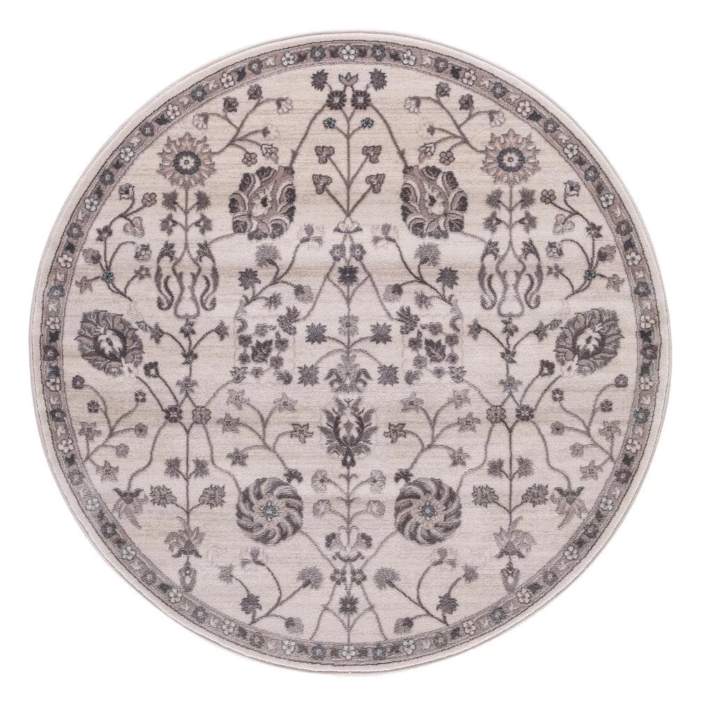 This Concord Global Trading Lara Collection 5 ft. x 5 ft. Area Rug will be a great decorative addition to your home. This round rug has stain-resistant fabrics and long-lasting materials. It comes in an ivory shade, bringing a subdued and pure touch to your decor. It has an oriental print for an intricately crafted piece that never goes out of style. With a dense pile, this rug insulates the floor to keep your living area warm and toasty. It has a 100% olefin construction, which will effectively resist fading over time.