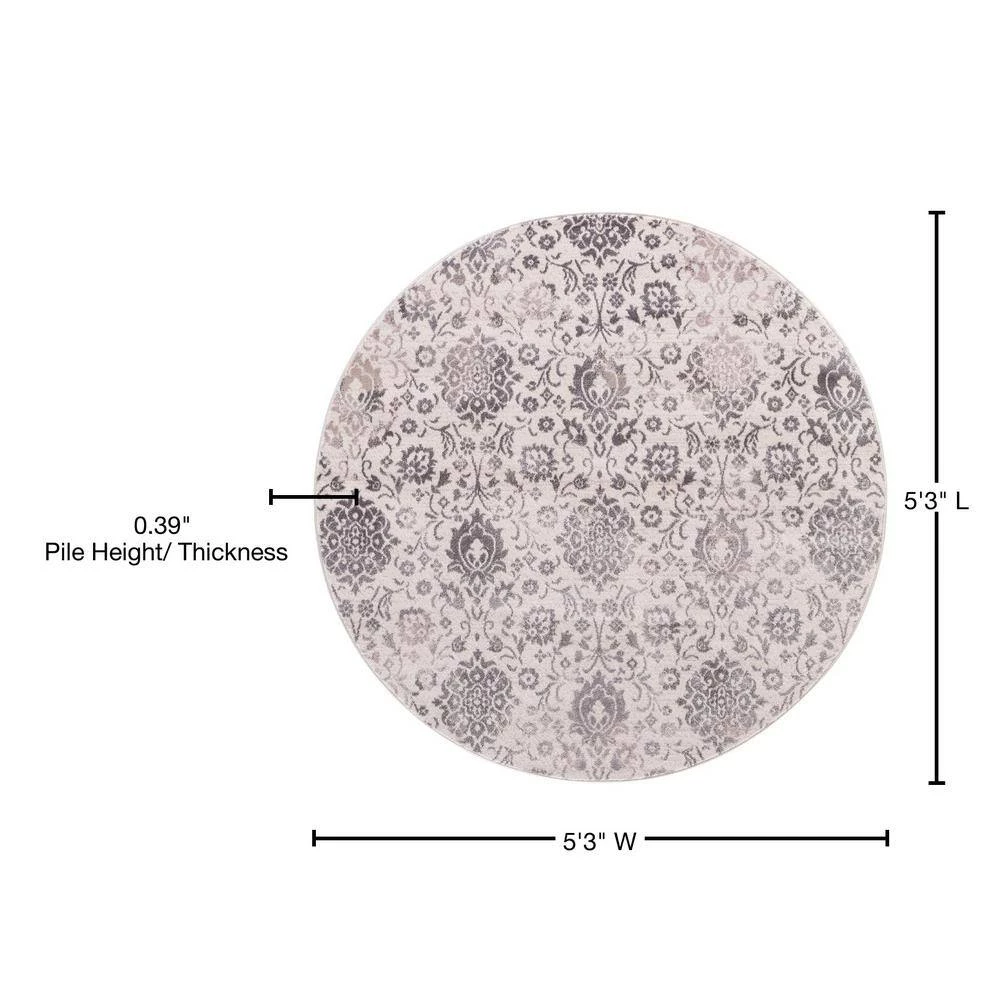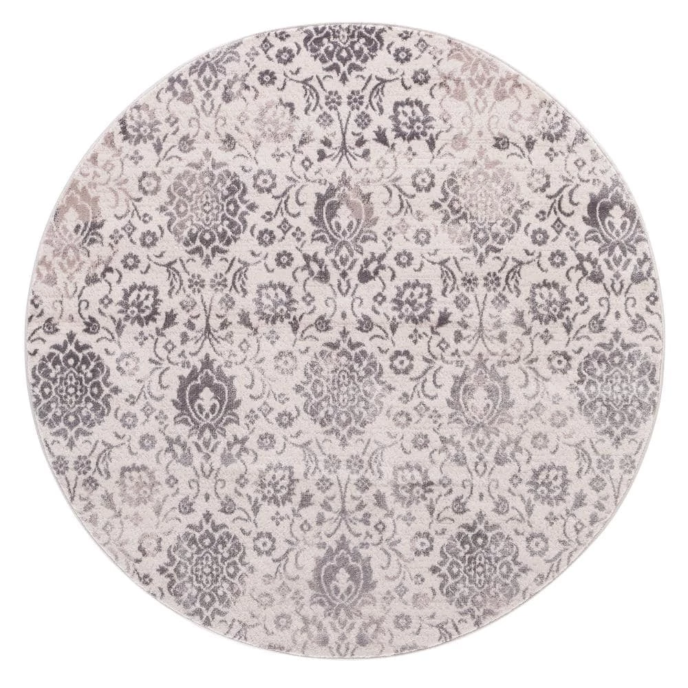 This Concord Global Trading Lara Collection 5 ft. x 5 ft. Area Rug will be a decorative addition to your home. This round rug has stain-resistant fabrics and long-lasting materials. Designed with elements of ivory, it will tone down your decor. It has a floral motif, adding a graceful touch to your space. This loomed rug has a 100% olefin design, which offers style and comfort. It has a dense pile, which withstands heavy foot traffic.