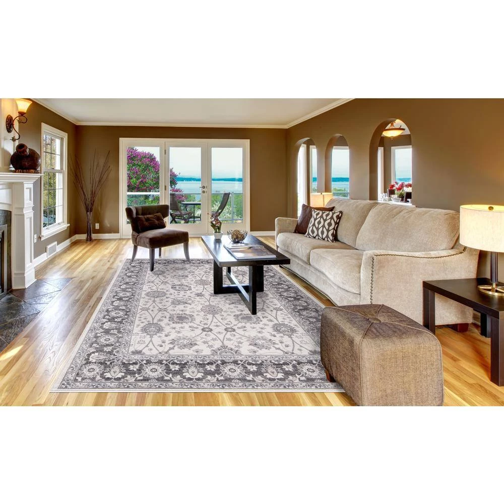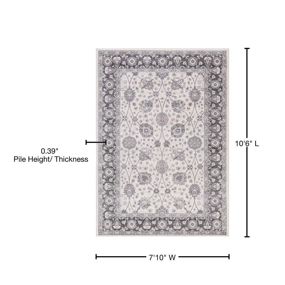 With the Concord Global Trading Lara Collection 8 ft. x 11 ft. Area Rug, you can bring a unique style to any setting. This rug features a stain-resistant construction and long-lasting materials. Designed with elements of ivory, it will bring a subdued and refreshing touch to any room. It has an oriental motif, bringing in an ornate touch to your home decor with intricate patterning. It has a 100% olefin design, making it a durable option with impressive longevity. This rectangular rug has a dense pile, which endures heavy foot traffic.