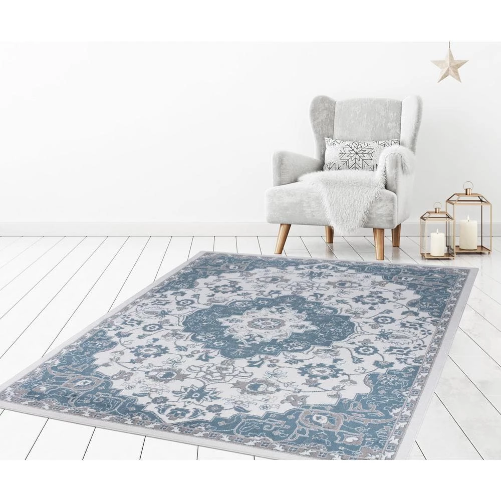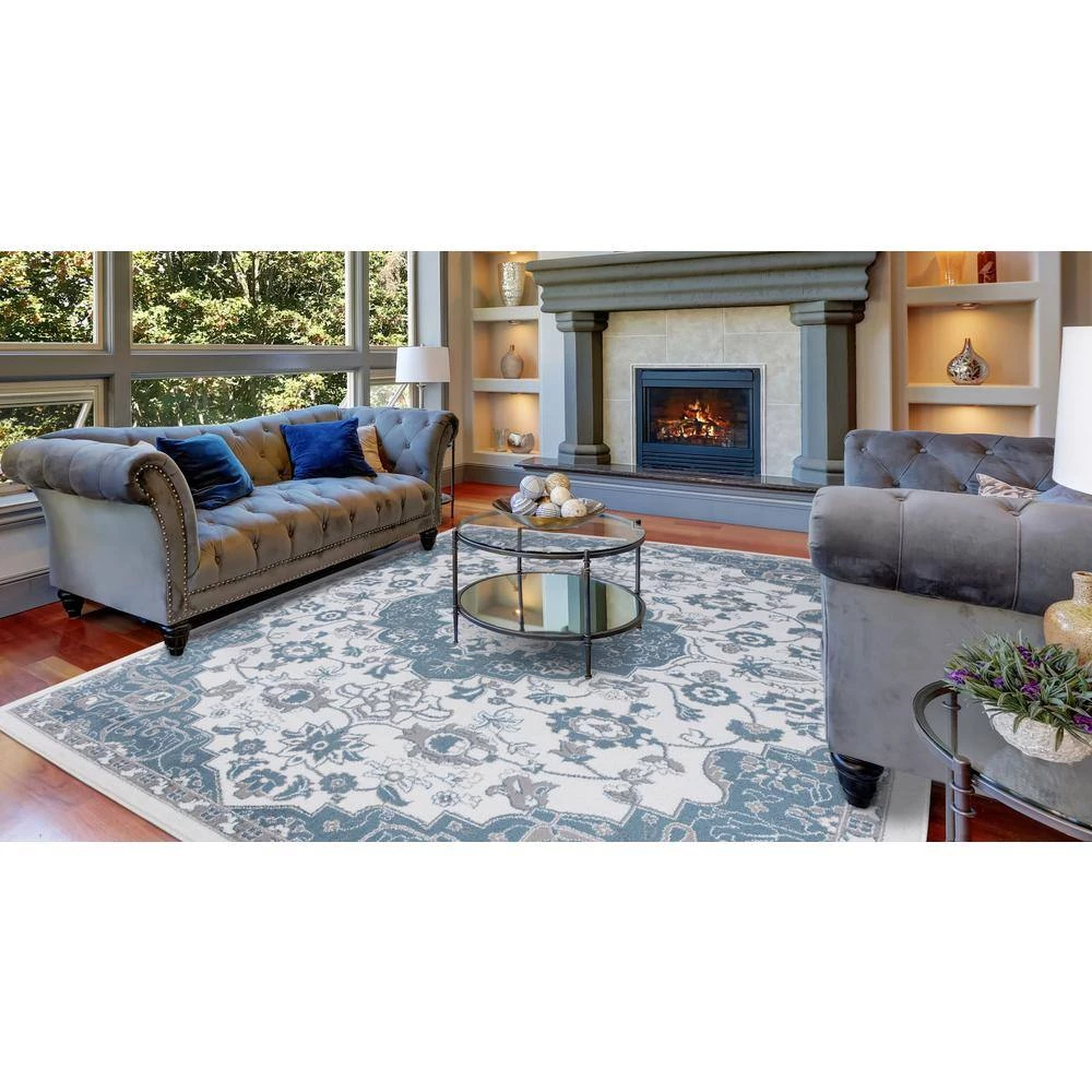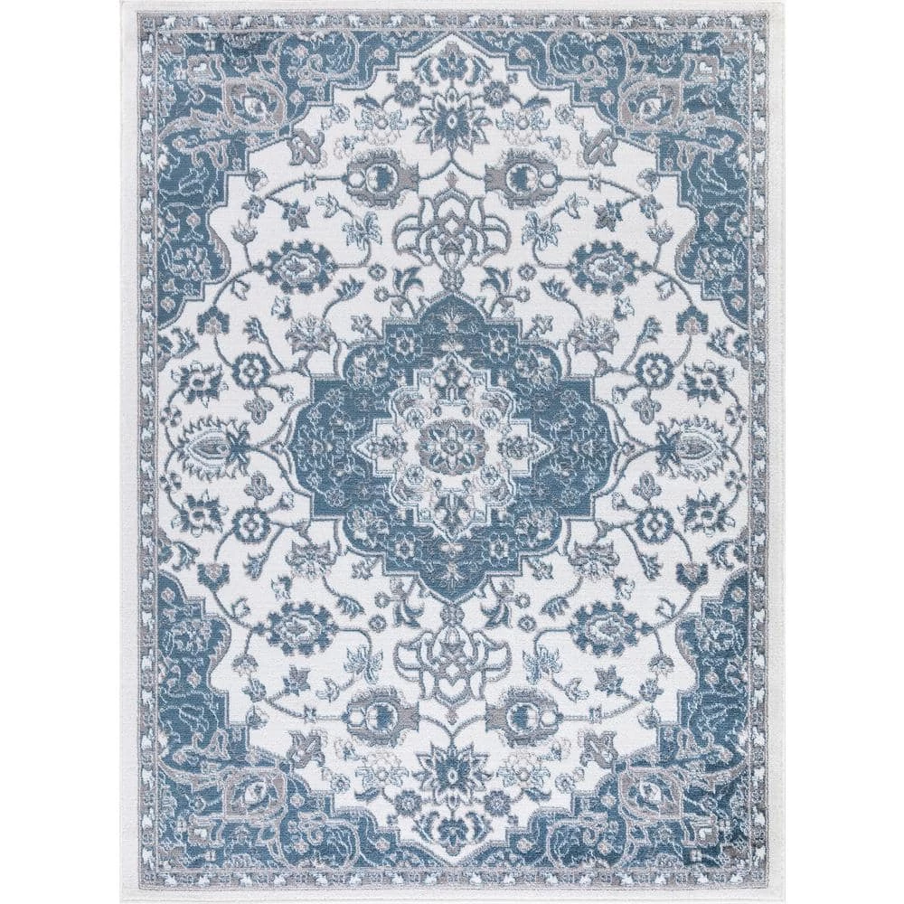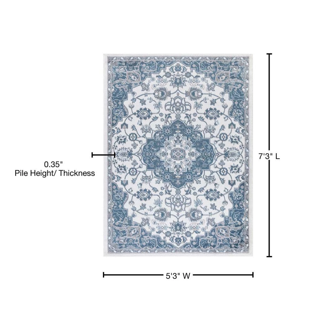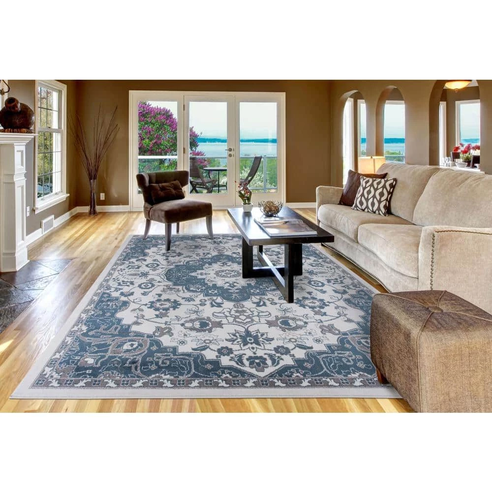 This traditional area rug is ideal for bringing your home design together. Perfect for helping to create a calm and soothing environment, it has soft tones, adding to your beautiful decor. Great for keeping your room warm, it has a half an inch of pile height, creating an insulated place to rest your feet on. This economy power-loomed rug features a traditional center medallion and a modernized small border. Created from durable synthetic olefin.