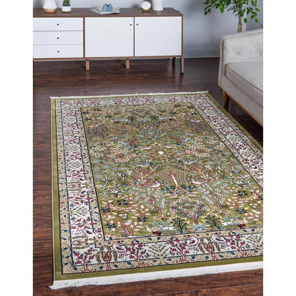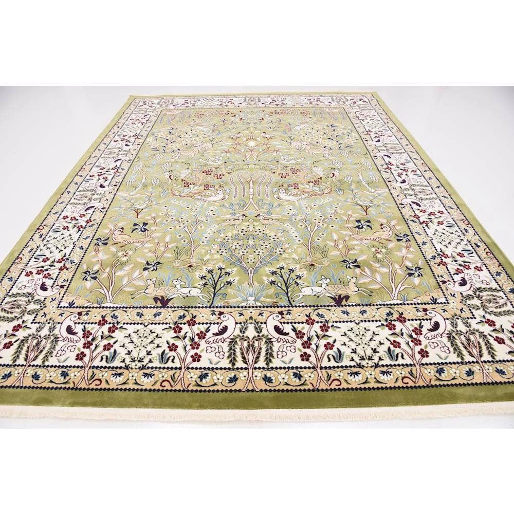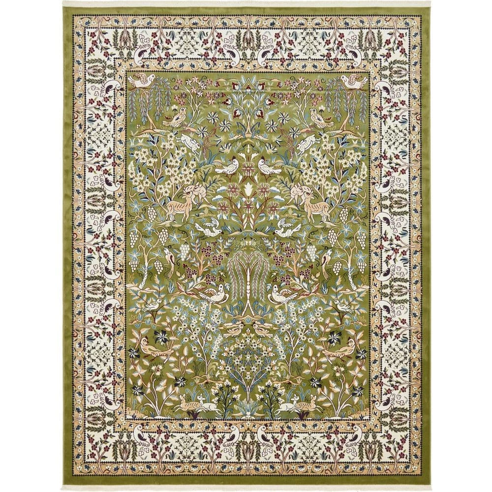 Transform your interior space with the Unique Loom Nain Design Collection 8 ft. x 10 ft. Area Rug. This rug is crafted with stain-resistant fabrics and has fade-resistant materials. It has a medallion print, which adds a bohemian-chic character to every decor. It comes in a green shade, bringing a striking design to your home. With a 100% polypropylene construction, it will offer unbeatable style and comfort to any room.