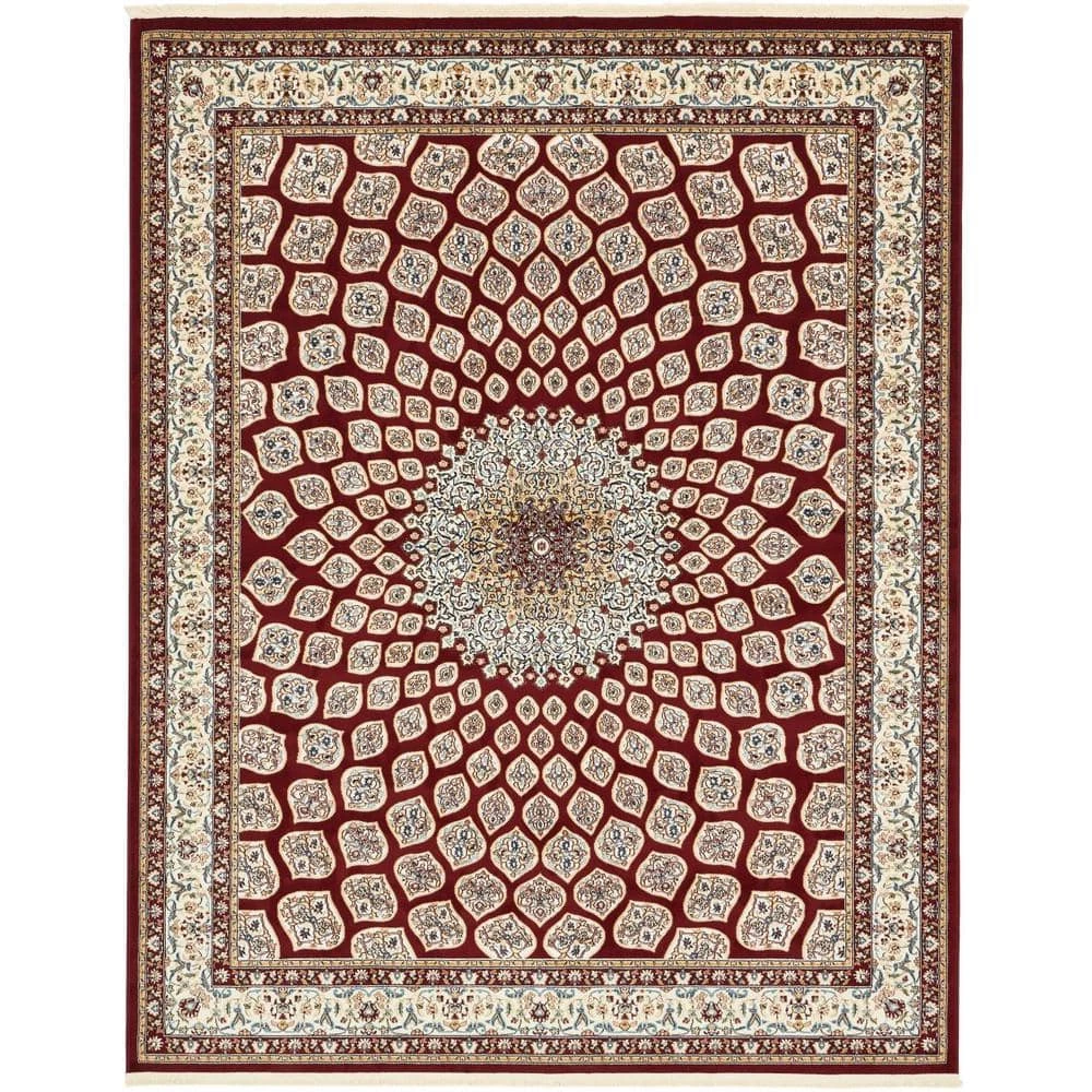 Complement any floor with this Unique Loom Nain Design Collection 8 ft. x 10 ft. Area Rug. This rug features a transitional style, which complements any decor. It has stain-resistant fabrics and fade-resistant materials, which ensure it will not discolor. With a 100% polypropylene design, this loomed rug is an extremely durable option for your home. It comes in a red shade, incorporating a fun and colorful atmosphere into the room. It has a medallion motif for a mandala detailing.