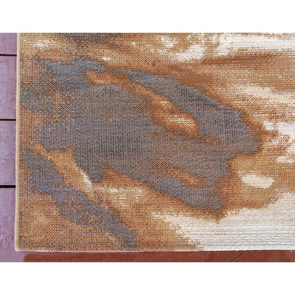 - Easy care: for an outdoor rug, remove debris frequently with the use of a broom or blower; to wash, spray the surface with a soap and water mixture, then rinse thoroughly with a garden hose and hang over a railing to dry thoroughly, rotate for even wear