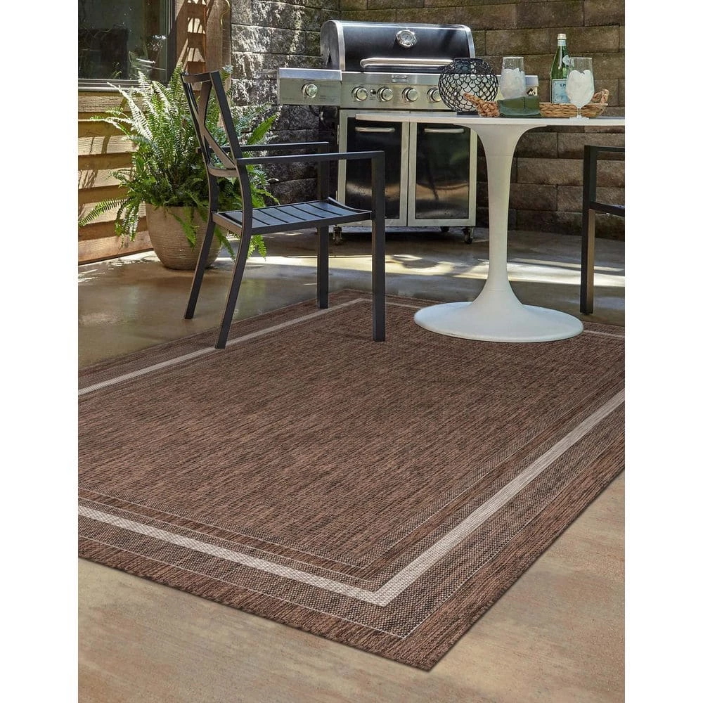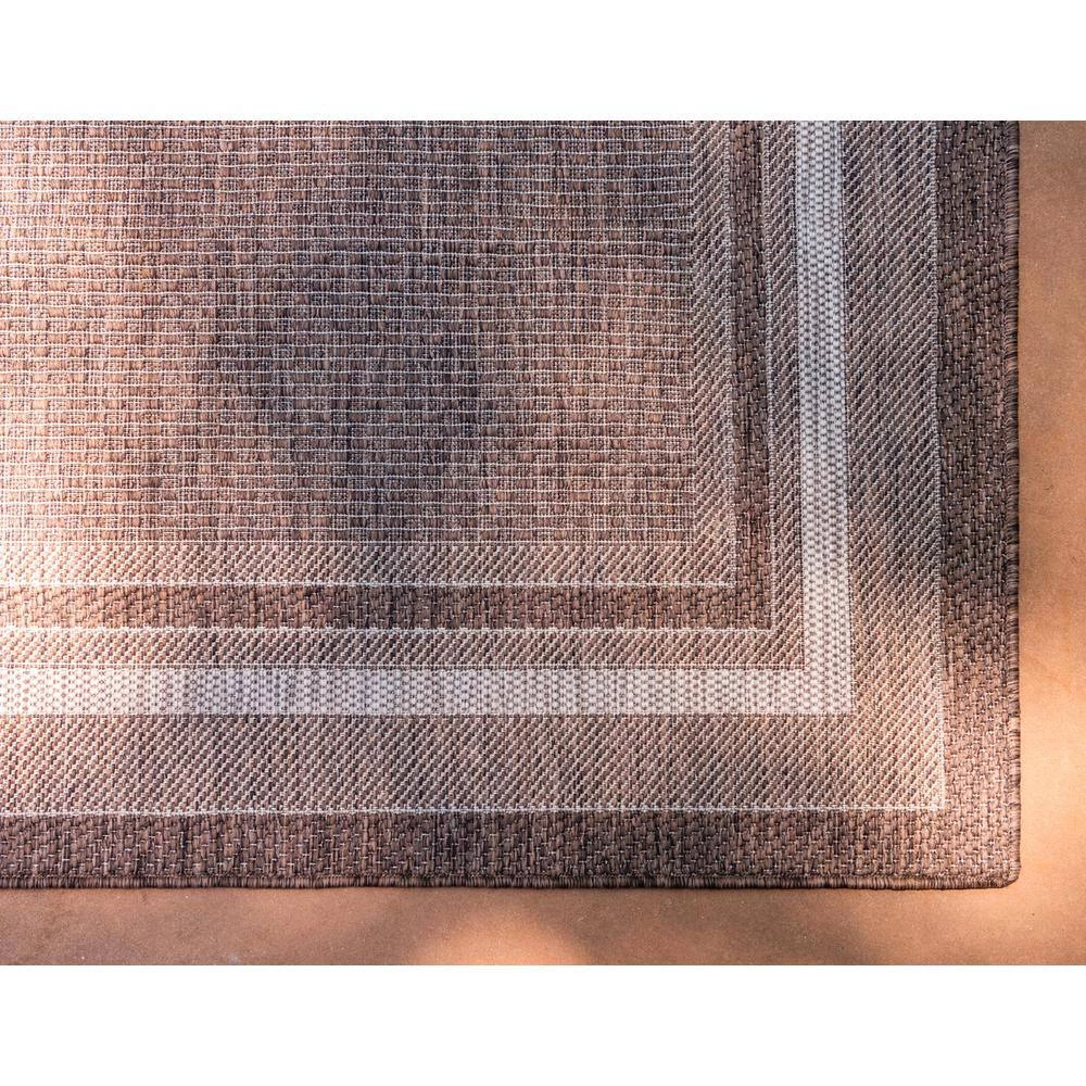 - Easy care: for an outdoor rug, remove debris frequently with the use of a broom or blower; to wash, spray the surface with a soap and water mixture, then rinse thoroughly with a garden hose and hang over a railing to dry thoroughly, rotate for even wear