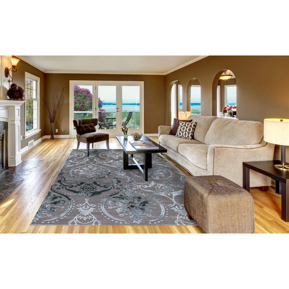 Upgrade any room with this Concord Global Trading Thema Collection 3 ft. x 5 ft. Area Rug. This loomed rug has stain-resistant fabrics and long-lasting materials. It comes in a teal shade for a pleasant and soft touch for your home. It has a 65% polyester design, which offers style and comfort. Boasting a dense pile, this rug tolerates heavy foot traffic.