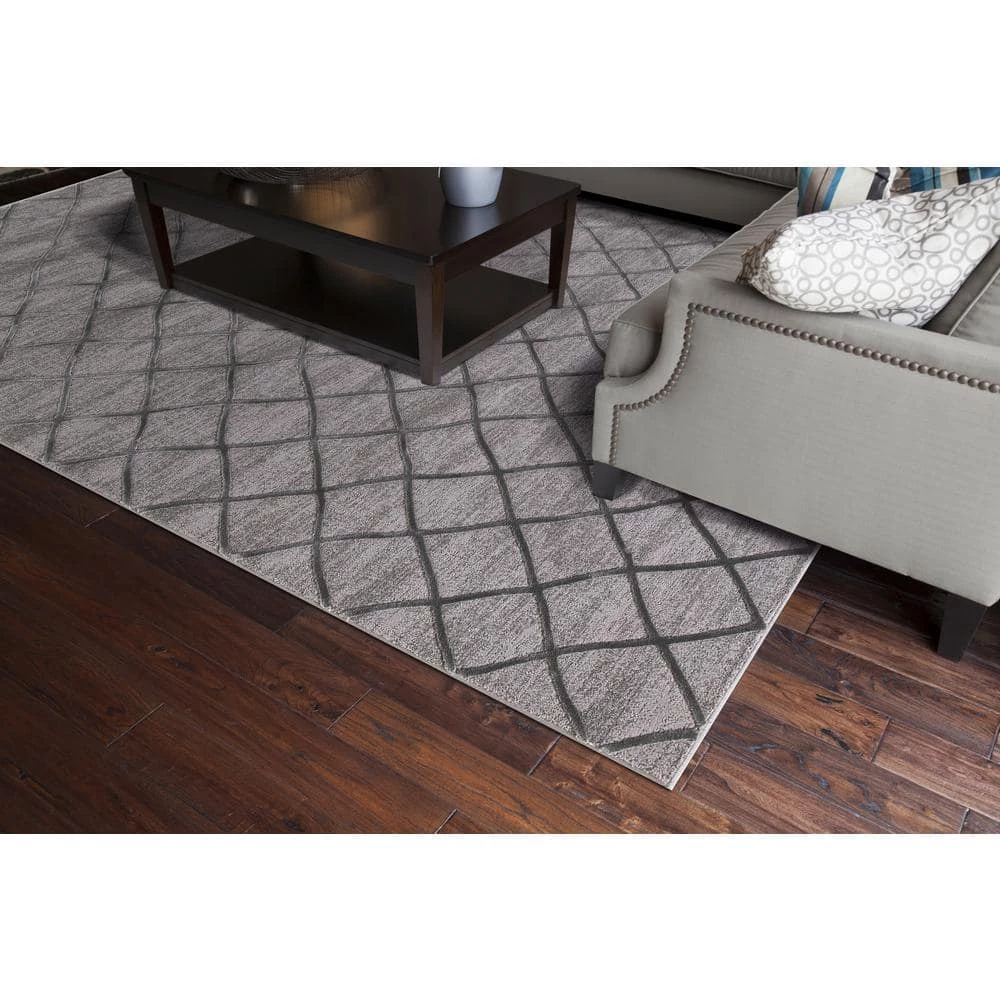 This Concord Global Trading Thema Collection 7 ft. x 9 ft. Area Rug will be a welcoming touch to your home. This rug has a stain-resistant construction and long-lasting materials. It comes in a gray shade, bringing a grounding touch to any room. It is adorned with trellis accents, achieving an open vibe that resembles window panes. Made from polyester, it will bring style and underfoot comfort to your decor. With a dense pile, this loomed rug insulates the floor to keep your living area warm and toasty.