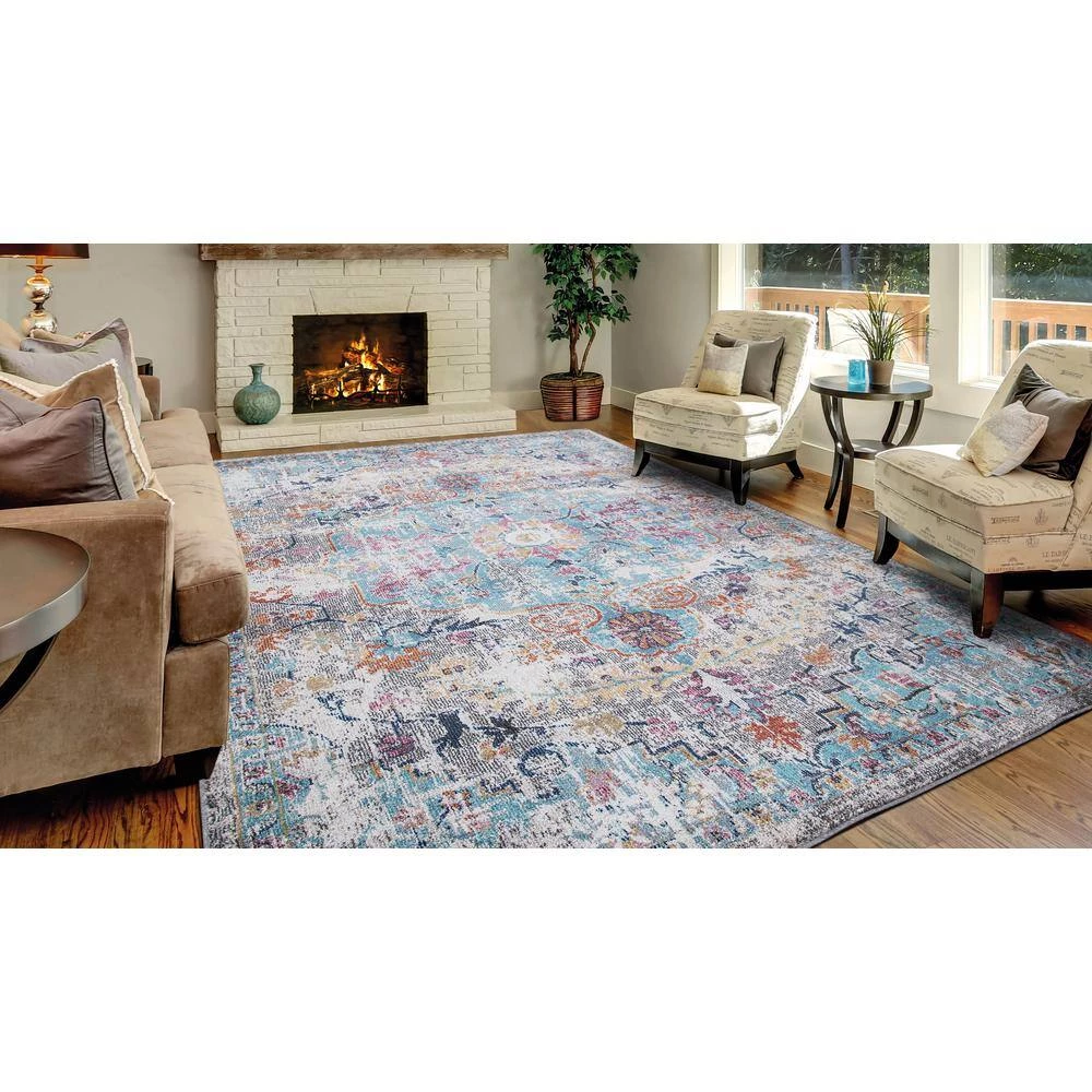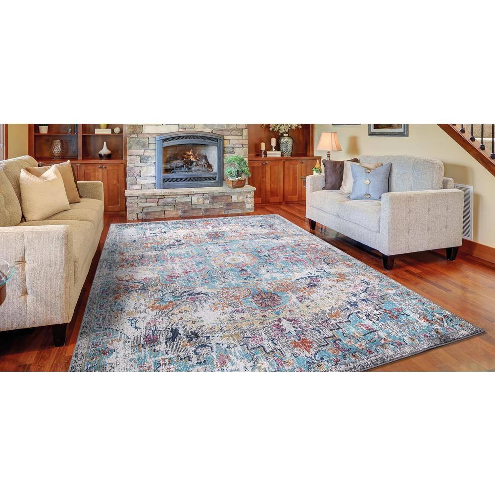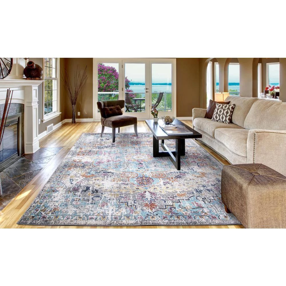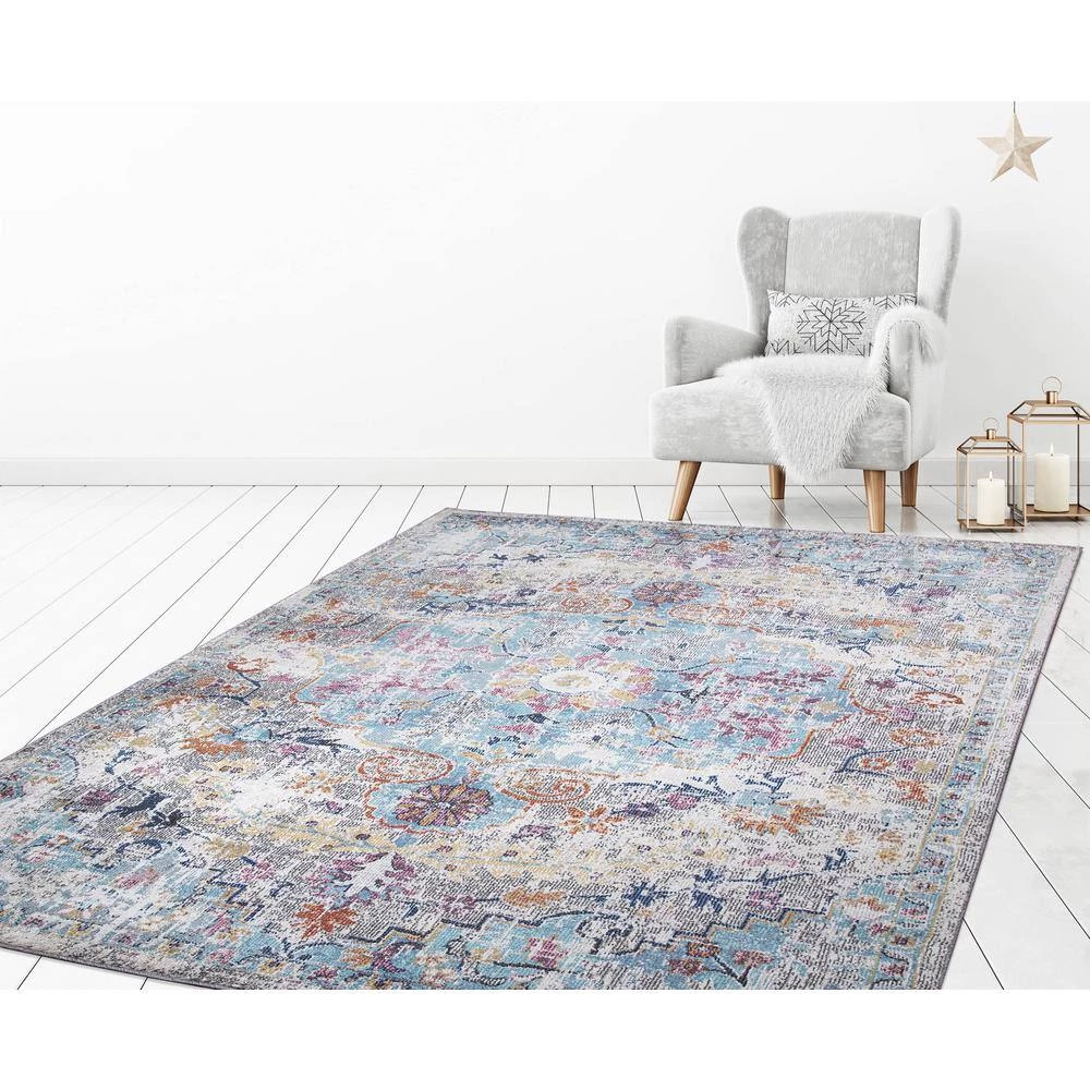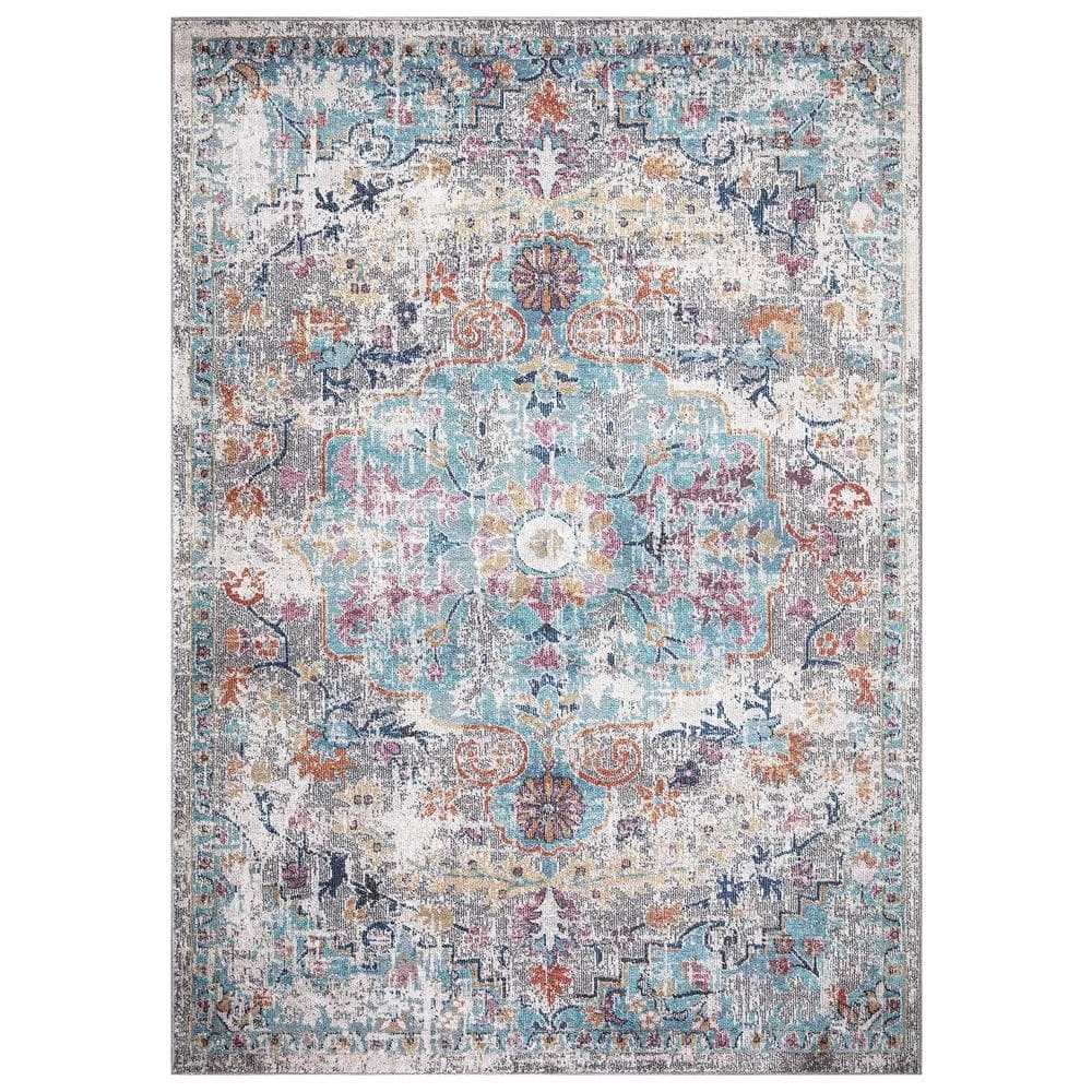 Cheap 🌟 Vintage Collection Azure Gray 8 ft. x 11 ft. Medallion Area Rug by Concord Global Trading 🌟